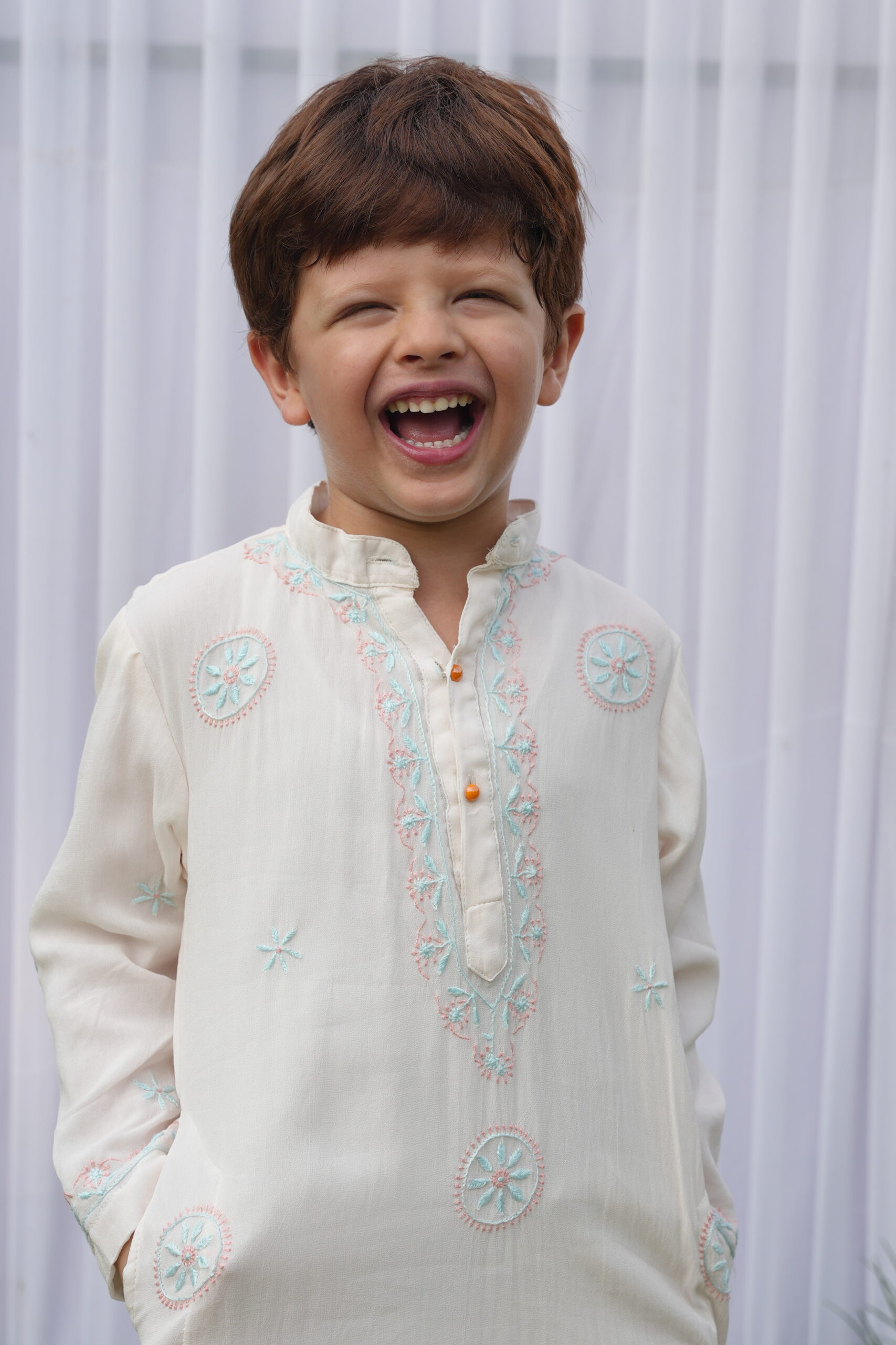 Our kurtas come with matching elasticated pyajamas in soft, pure fabrics for ultimate comfort.
